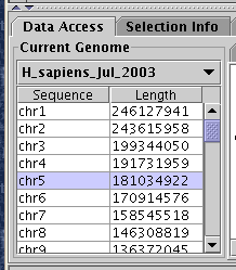 - You may now access any previously-loaded genome and sequence with the controls on the left-hand side of the "Data Access" tab.