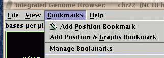 Figure: To access the "Bookmark Manager", choose "Bookmarks->Manage Bookmarks".